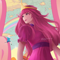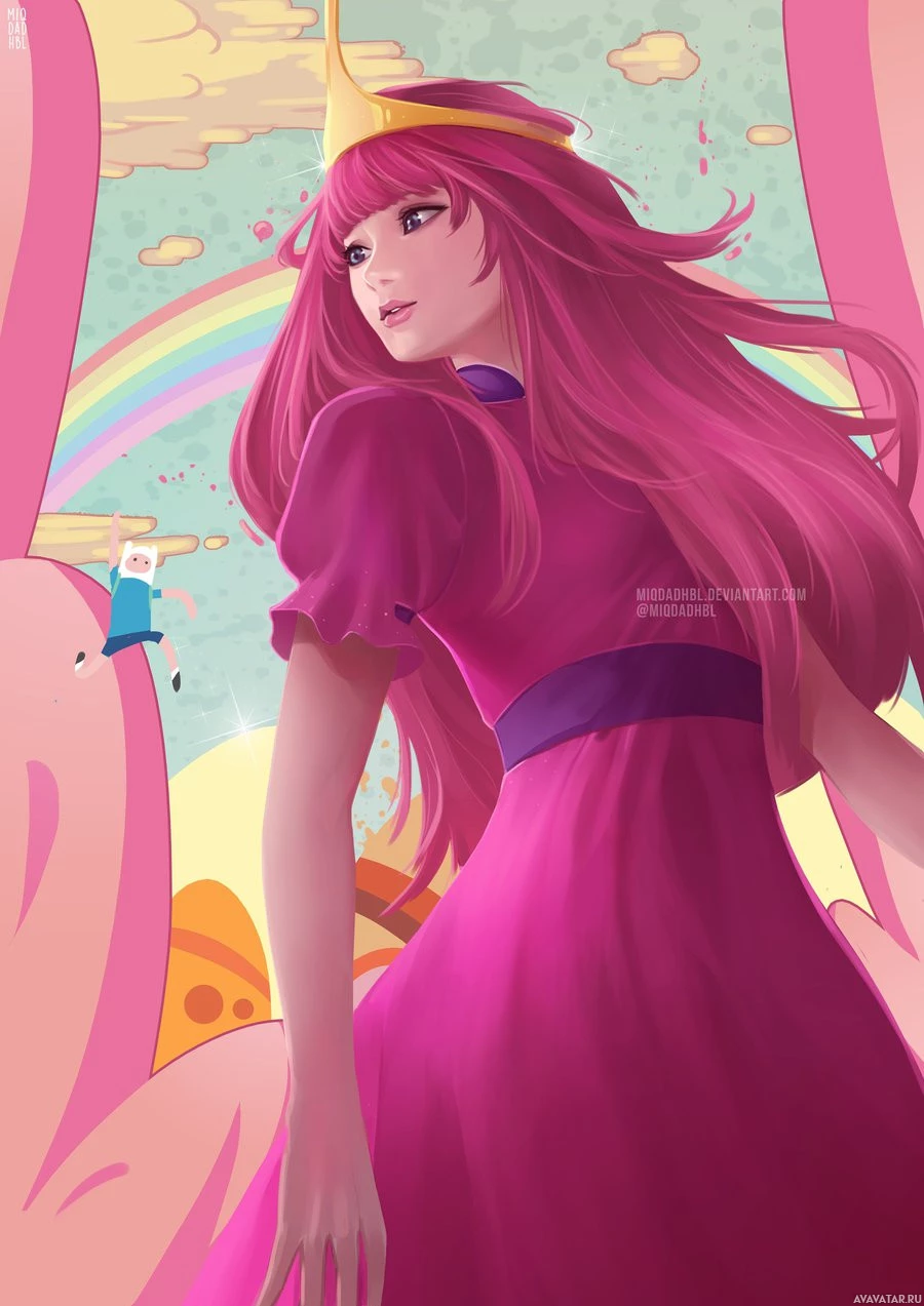 an animated character named Princess Bubblegum from the animated television series "Adventure Time." She is depicted with