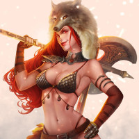 a female warrior or barbarian. She has long,