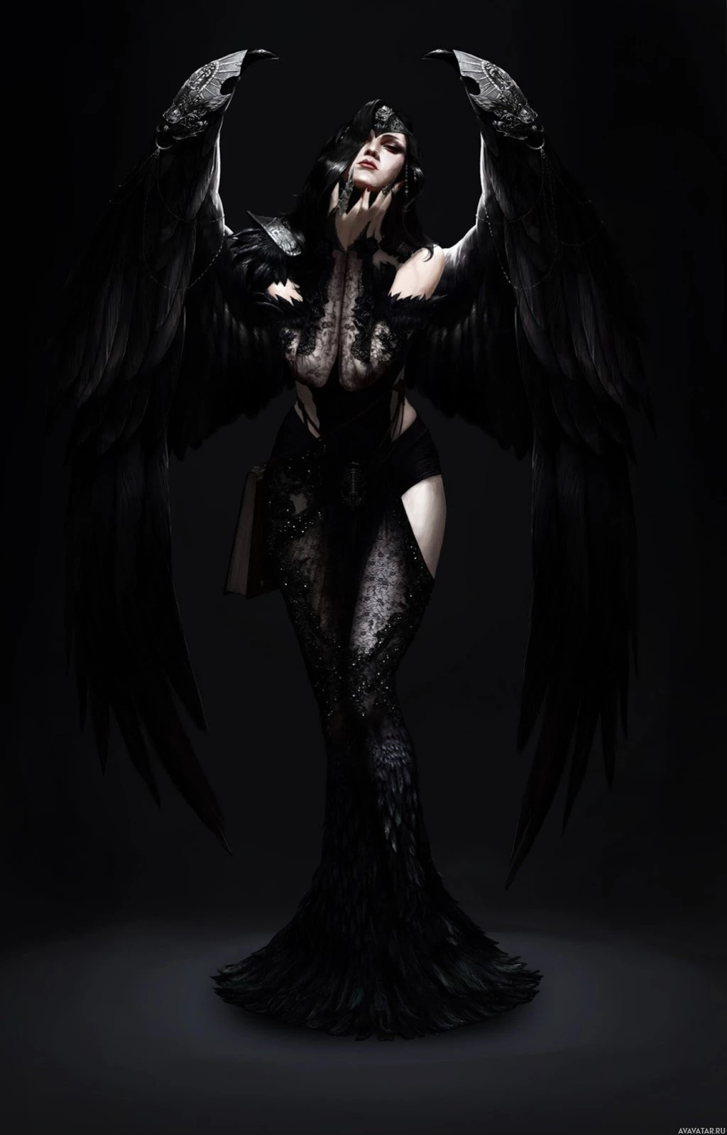 intricate designs and possibly wings attached to the back, which is a common element in fantasy or cosplay outfits. The attire gives off a mystical or otherworldly vibe, fitting for a character that might be from