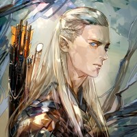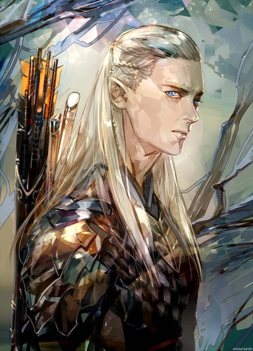 the fantasy genre, specifically an elf from Middle-earth. The character is styled to resemble Legolas from J.R.R. Tolkien's "The Lord of the Rings" series, as suggested by the tag. The character is shown with long