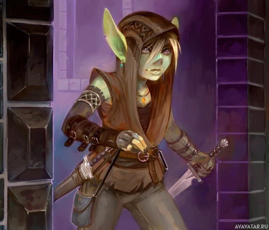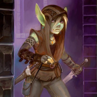 fantasy character who appears to be a young female with elf-like features such as pointed ears. She has a somewhat