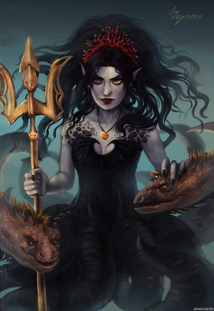 a fantasy character that resembles Ursula, a sea witch from the Disney animated film "The Little Mermaid." This depiction is stylized and has some distinct differences from