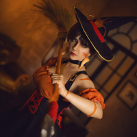 a witch costume. She has