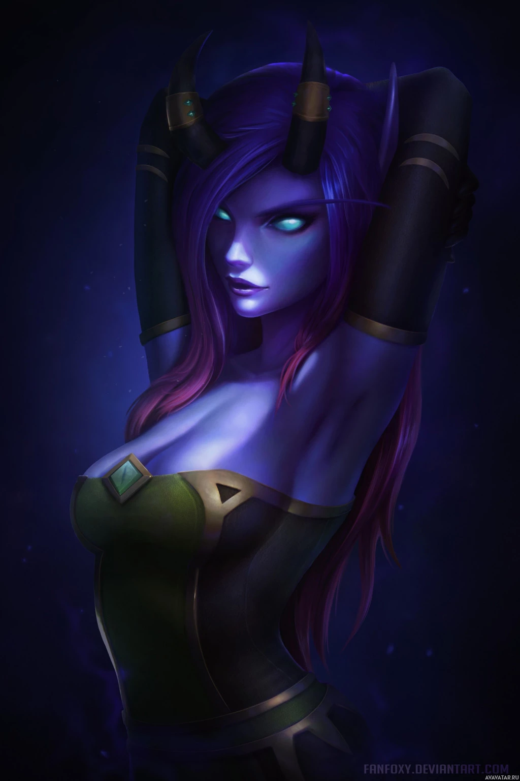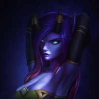fantasy universe, depicted in a stylized and artistic manner. This character has purple skin,