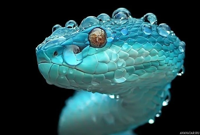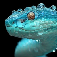 droplets of water on its skin, suggesting it was in contact with water or had been in an environment where moisture was present. The snake's color and pattern are typical for species like the blue