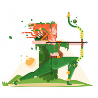 the video game Dota 2, known as Windranger. This character is known for being able to control the wind and shoot arrows with