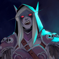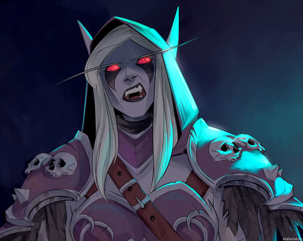 red eyes, which signifies her darker nature as the Banshee Queen. Sylvanas is known for being a key figure in the storyline of the franchise, particularly in the games "