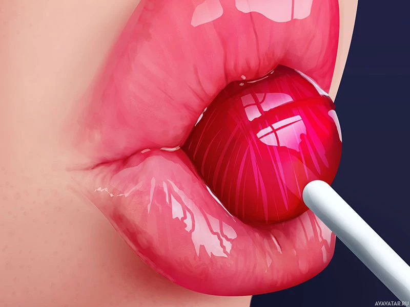 На картинке изображена пара губ, одна из которых спрятана вокруг куска конфет. С другой стороны губы есть соломенное устройство, используемое для вставки конфет в рот. Это цифровое произведение искусства или иллюстрация, демонстрирующая игривую концепцию.