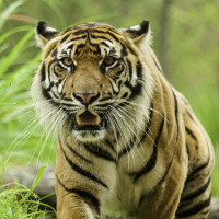 The image shows a tiger, which is an animal. Tigers are known for their distinctive