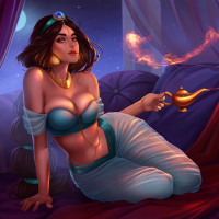 an animated character who appears to be Jasmin from a story, possibly inspired by the tale of Aladdin. She is depicted in