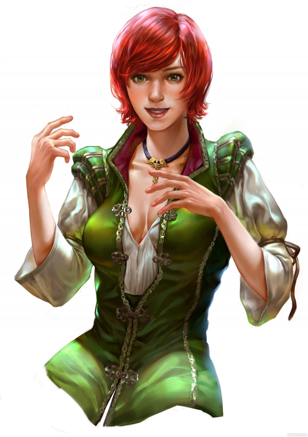 concept art used for games, with detailed clothing and a confident expression. The character is wearing what seems to be armor or attire consistent with fantasy themes.