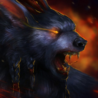 a dynamic pose with its mouth open as if roaring or shouting. The background features fiery effects that suggest a battlefield or intense