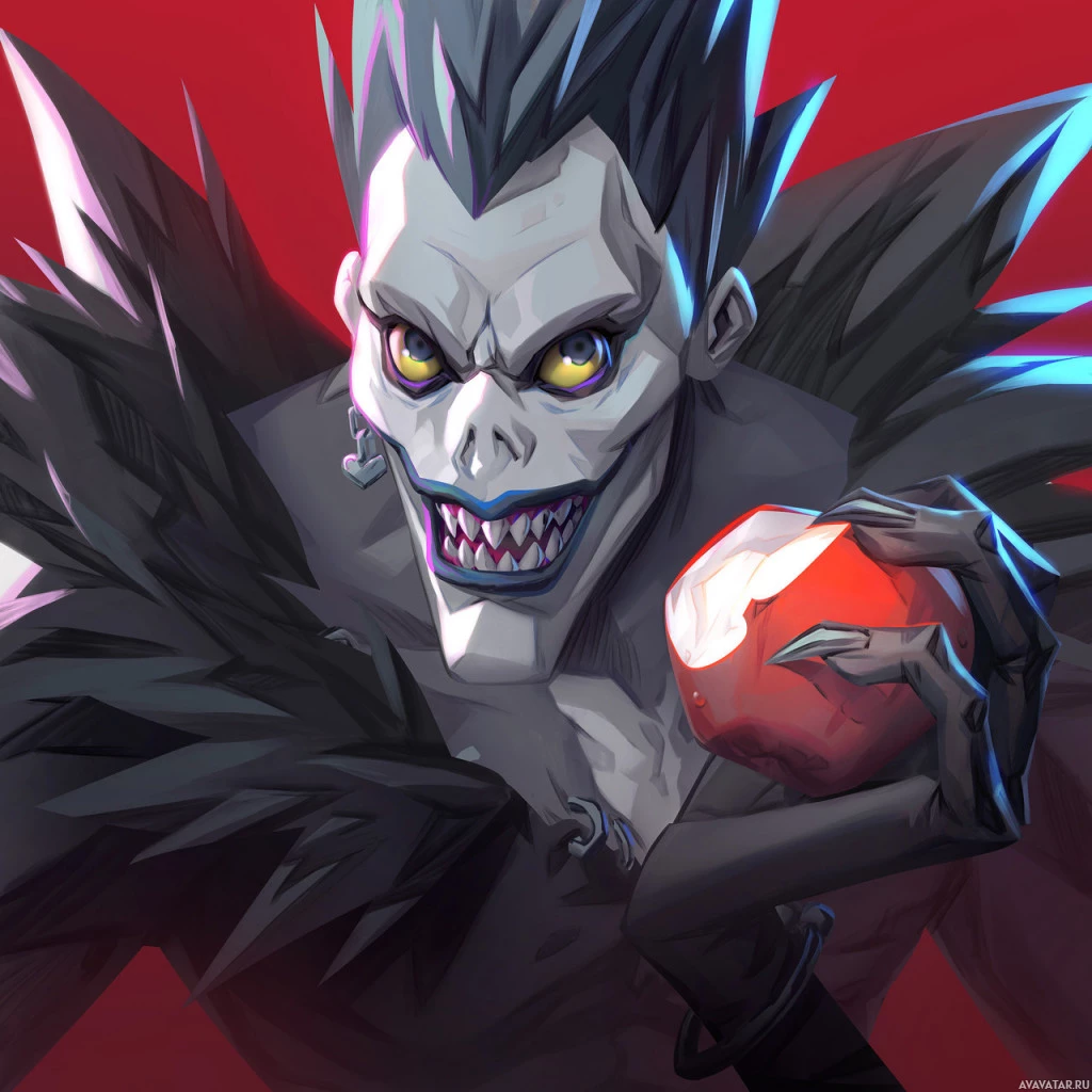 red apple in its hand, which may symbolize temptation or danger. The character's facial features resemble a skull, with eye sockets and