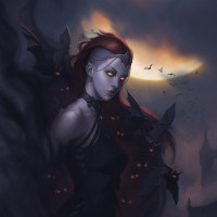 a fantasy character, likely a vampire or a creature resembling one. This character is shown with