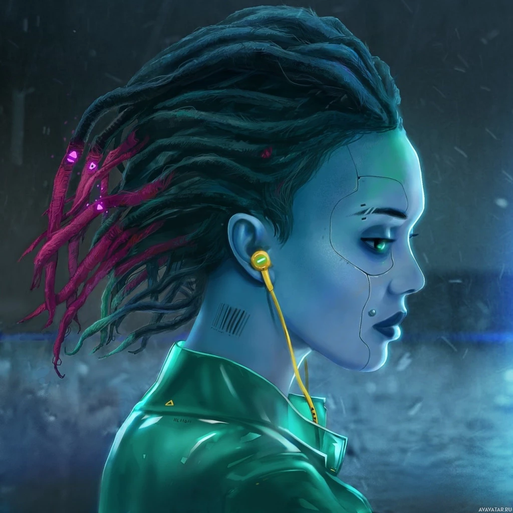 The image shows a character who appears to be a fusion of human and robotic elements. This character is wearing headphones, suggesting a connection with technology or music. The background suggests an industrial or possibly futuristic setting, which aligns with