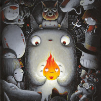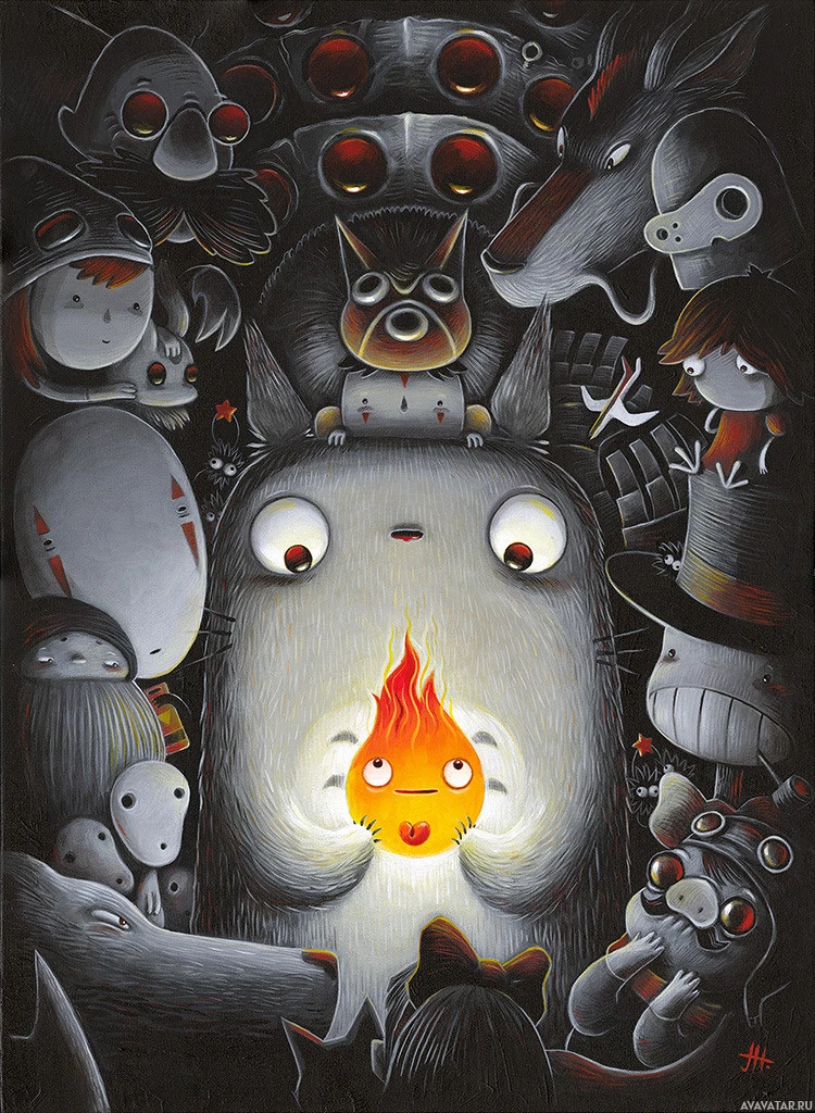red flames flickering around its head, giving it the appearance of having a fire on its head. The other characters are drawn in different styles and expressions, suggesting a mix of emotions or reactions. It's worth noting that this image is likely influenced by the style of Japanese animation (anime) and has elements reminiscent of "Pokémon," which often feature anthropomorphic creatures with