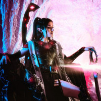 The image features a person dressed in what appears to be a fantasy-themed costume, reminiscent of an elf from mythology or pop culture. They are seated on