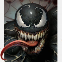 The image shows a character wearing the Venom costume, which is typically associated with the Spider-