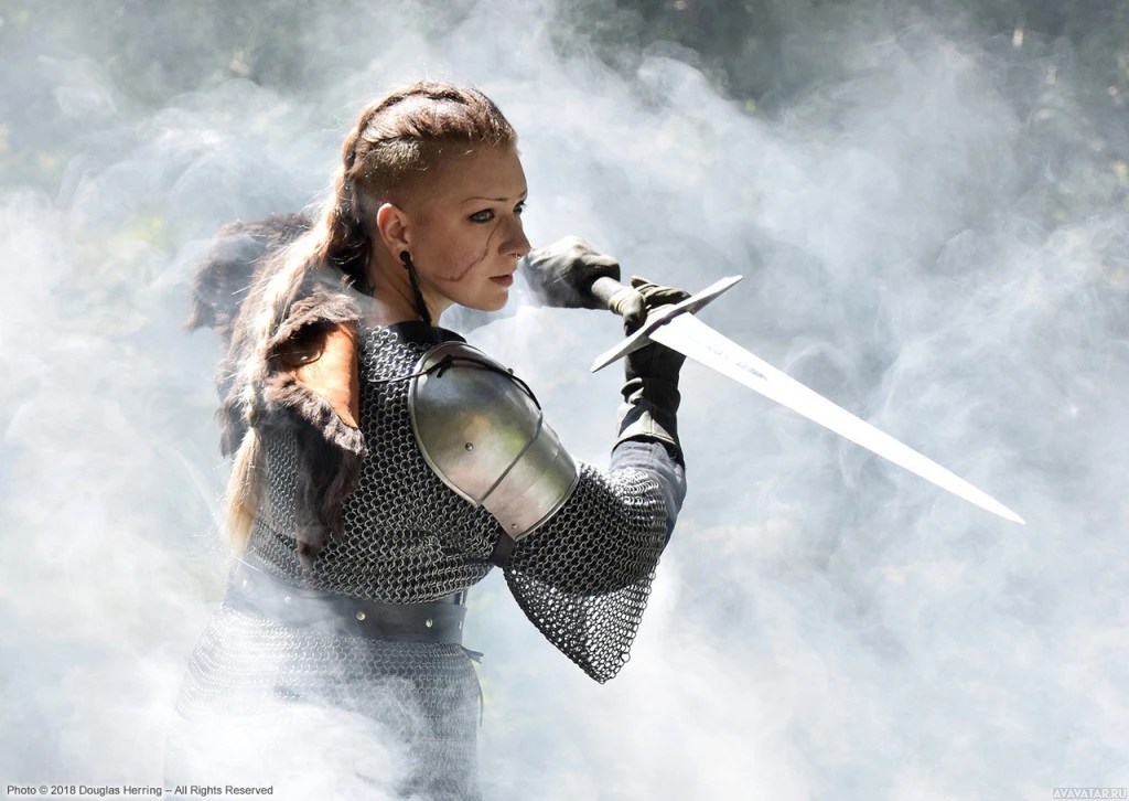 medieval armor, wielding a sword. There is visible smoke or fog around the figure, suggesting some sort of