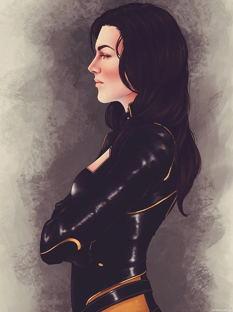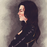 The image depicts a character from the Mass Effect video