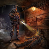 military gear and has a weapon with them, suggesting they may be engaged in some sort of combat or mission. There are other