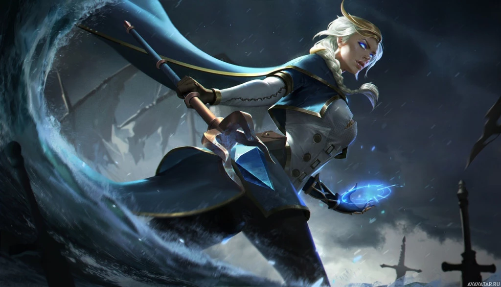 a dynamic pose with her hair flowing back and a determined expression on her face. Jaina is dressed in