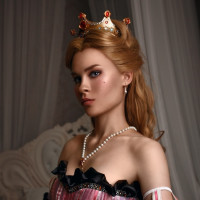 pearl necklace, and what seems to be a tiara or crown on the head, all contributing to the regal appearance of the character.