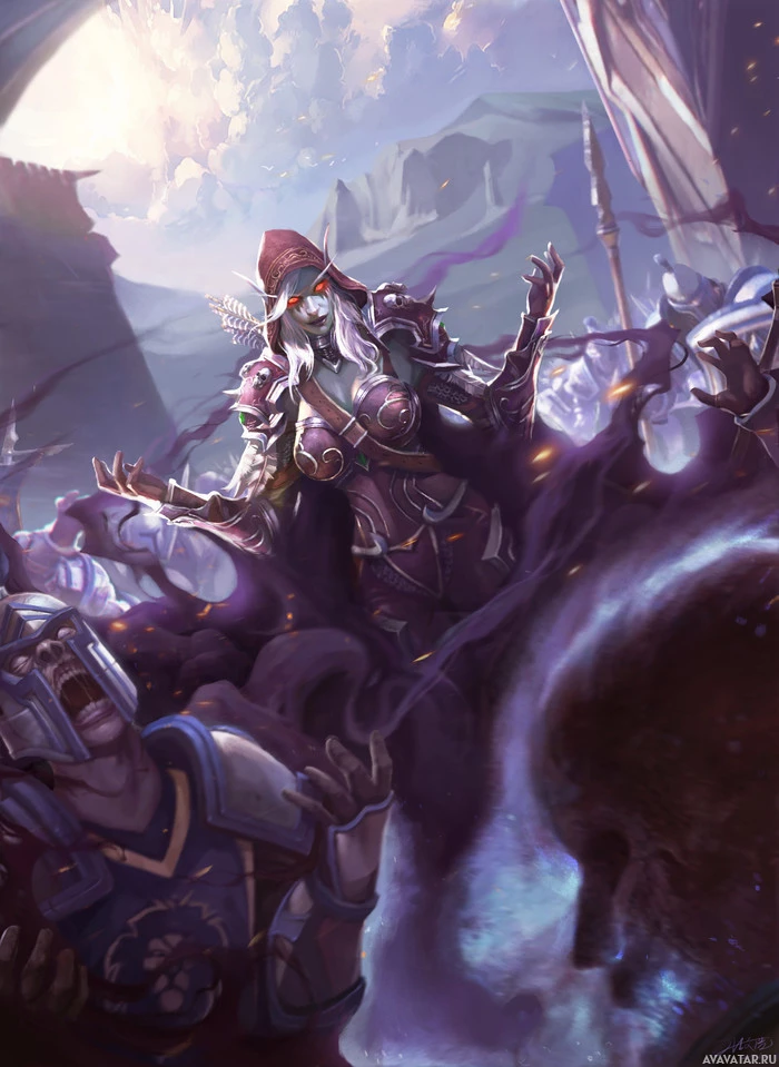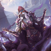 the Warcraft universe: Sylvanas Windrunner, the former Queen of the Undead Forsaken, and Anduin Wrynn, the King of Stormwind. They are shown in