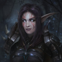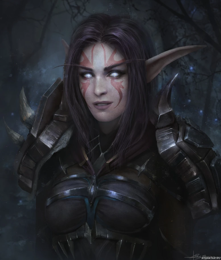 fantasy character, likely an elf due to her pointed ears and the style of her attire. She has