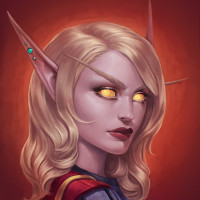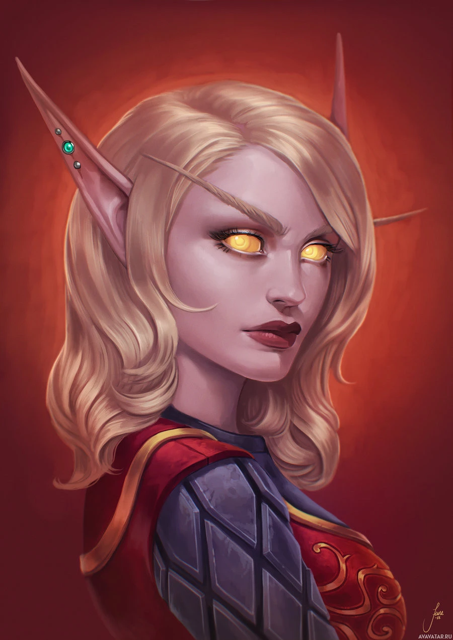 yellow eyes, and is wearing what appears to be armor or a protective garment. Her hair is blonde and styled in waves. This character could be from a fantasy setting, possibly