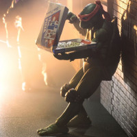 Ninja Turtles holding an open pizza box. The character is depicted in