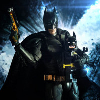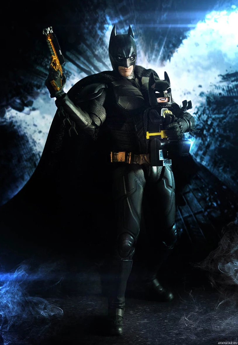 a dark costume with a cape, which is characteristic of Batman's design. There are no visible Lego elements in this picture.