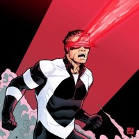 red accents. This character has a visor that covers their eyes, which are represented by a red blur or