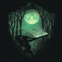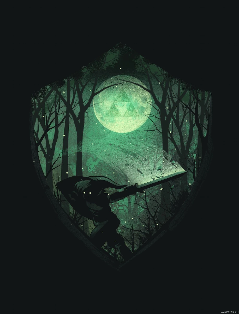 a forest setting, and what looks like a full moon above. The artwork has a dark and mysterious tone, which is fitting for the theme commonly associated with the character Link from