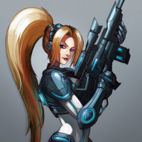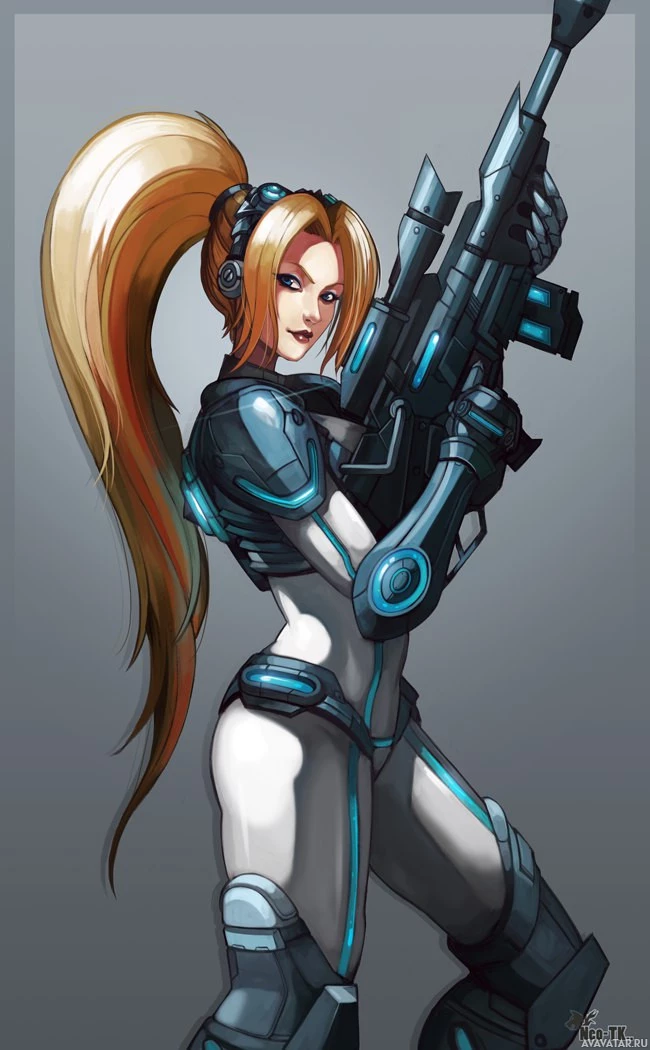 a female character, which appears to be inspired by characters from the video game "StarCraft." She is depicted wearing