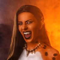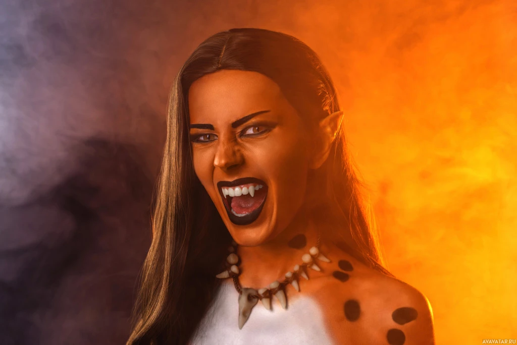 a human woman and the other side looks like an elf or fantasy character. It is a creative representation combining both elements in