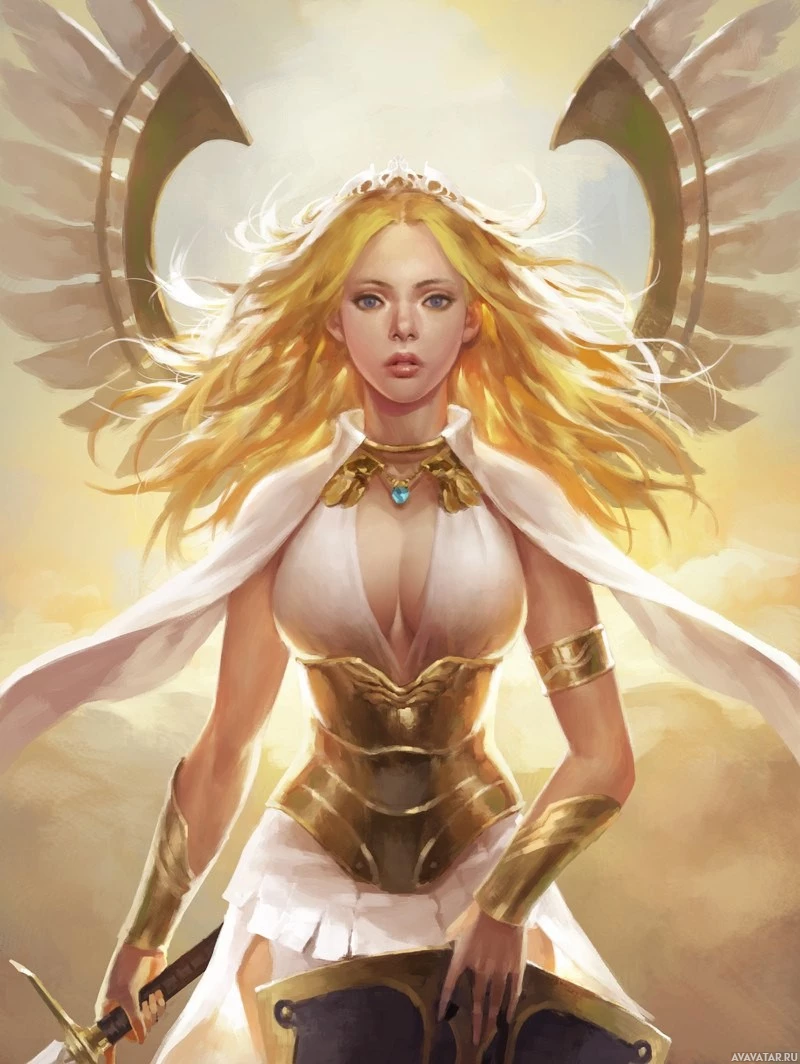 The image depicts a fantasy-themed character that appears to be an angel. She has