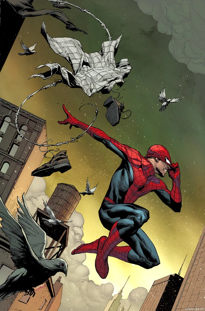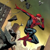 The image features a comic book illustration of Spider-