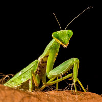 На снимке изображен богомол. Богомолы известны своим отличительным внешним видом, с большими глазами и передними конечностями, приспособленными для захвата добычи. Они часто встречаются в садах или на полях и считаются полезными насекомыми из-за их способности контролировать популяции вредителей.