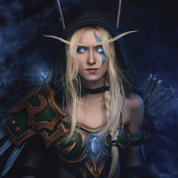 an elf character from the Warcraft series. She is wearing elaborate armor and has