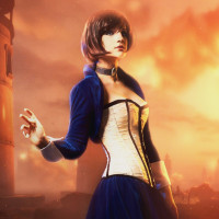 the video game "Bioshock Infinite." This is an artistic depiction of the character, portraying her in a detailed and realistic style. She is dressed in a Victorian-era outfit with