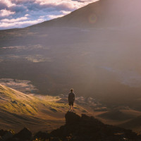 an erupting volcano. This image could be associated with themes such as adventure, nature, sunrise/