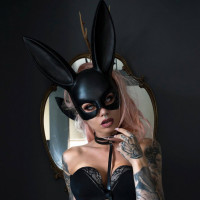a black mask and ears resembling those of a rabbit. They also have