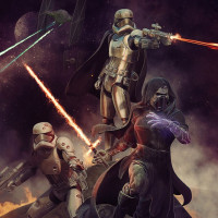 the Star Wars franchise. On the left, there is a stormtrooper in