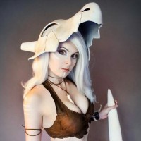 white hair and a design that could be associated with a creature from the games or anime series. The person is posing confidently, adding to the character's appeal.