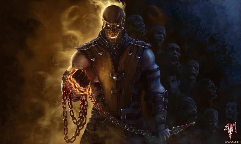 the video game series "Mortal Kombat." This character is known as Scorpion, recognizable by his flaming skull mask and