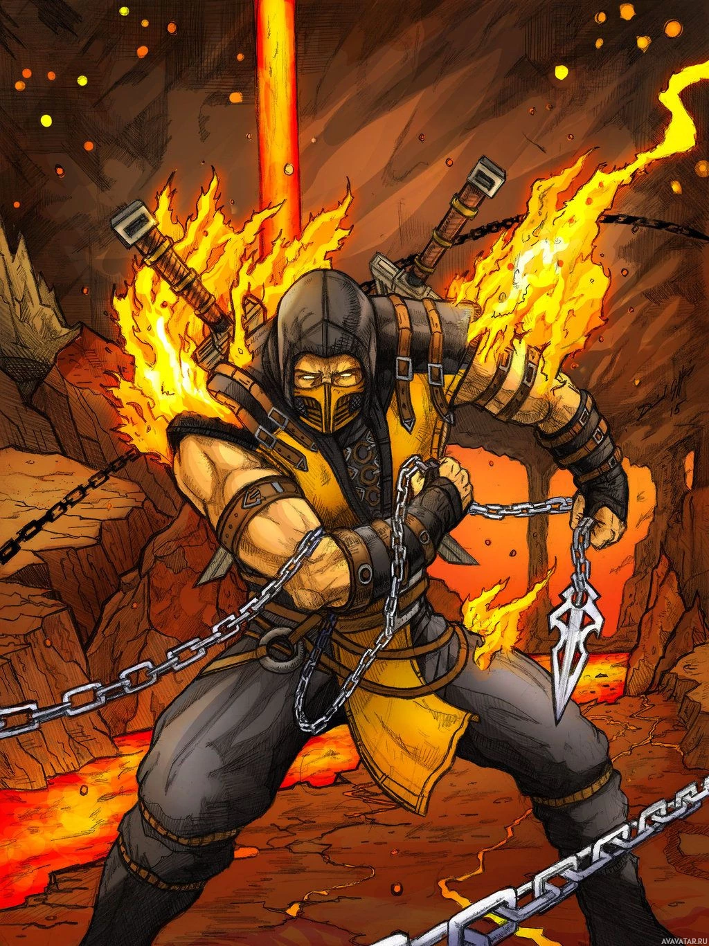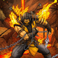 Kombat series, known as Scorpion. He is shown in his iconic yellow and black suit with