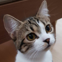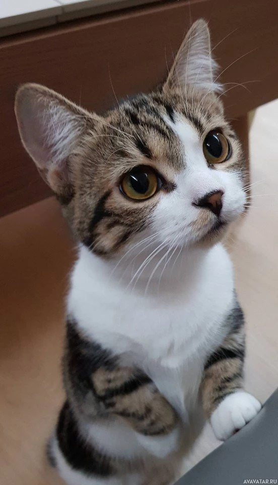 a tabby cat with distinctive markings and patterns. It is standing on its