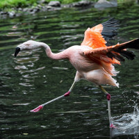 The image shows a flamingo, which is a type of wading bird known for its
