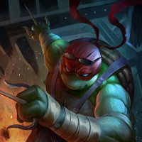 The image features an illustrated character that is Raphael from the Teenage